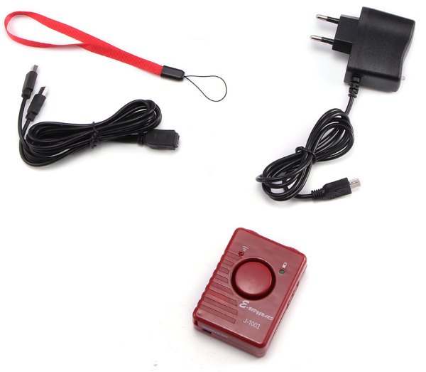 Сигнализация J-1003 может использоваться и несколько с иной целью – для защиты от кражи личных вещей. Чтобы реализовать эту опцию, нужно при помощи входящего в комплект кабеля присоединить отпугиватель к ручке сумки, чемодана и иного предмета. В момент попытки кражи сработает сигнализация.